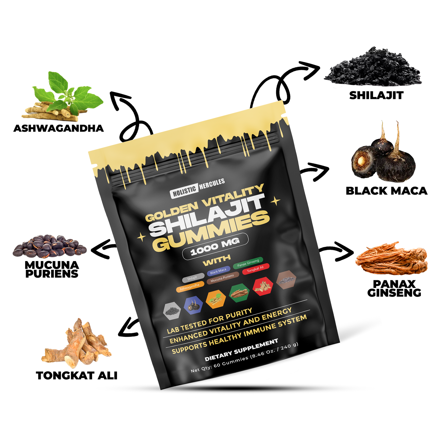 With Panax Ginseng and Piperine, our gummies support better blood flow and nutrient absorption, helping you stay strong and active longer.