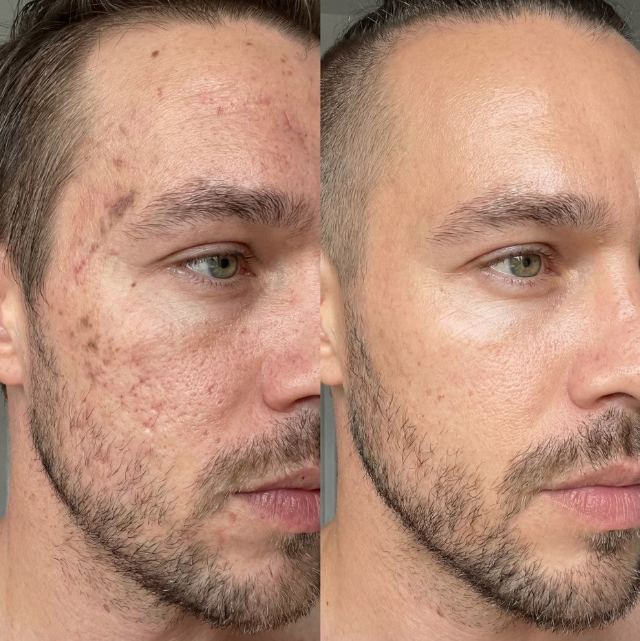 Most users begin noticing improvements in clarity, texture, and redness within 2-3 weeks, with more visible changes in firmness and the look of post-acne marks over 4-8 weeks of consistent use.